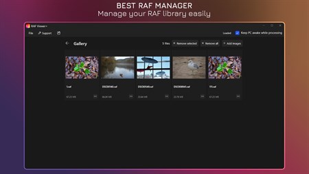 + Quickly preview RAF. + Manage your RAF library. ++ Open file with default app. ++ Reveal file in File Explorer. + Save file to PNG, JPG, BMP with resize option.