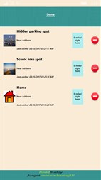 The applications of RoadBuddy are endless! Get RoadBuddy today, sit back and relax as the app does all the work for you...for life! RoadBuddy also provides you the distance to your saved favorite places at any point dynamically in real time , so you can decide which one to go to the quickest! Here are a few simple steps on how to use the app, once it is installed: 1) Tap on the app logo. The app shows a pop up prompting you to save your current location. 2) If you want Roadbuddy to remember your present location and for you to reference it in the future, tap 'Yes' (recommended!). If you prefer not to, tap 'No'. Don't worry-Roadbuddy will automatically remind you to save any new locations you visit in the future with just one Tap! 3) If you tapped 'Yes', RoadBuddy prompts you to provide a name for the location(and it provides useful hints for the name). 4) Once done, the Location is saved under the name provided. In addition, RoadBuddy captures details of the location (City), the date and time of the visit and the distance of the saved location from the current location! Forget remembering that location for life! 5) The location is saved on RoadBuddy for life ,so the user can goto RoadBuddy pick the location years from now and not have to remember the directions to it. In fact, RoadBuddy can remind you that you visited the location, years from now, if you happen to be in the vicinity! 6) Once the location is saved, if you want to go back to the location, you either open the app, and tap on the location Or you let RoadBuddy surprise you through a reminder! 7) Once the app is open, tap on the location you want to go to and Bing Maps is automatically opened ,showing you the directions. 8) The App also features 'sorting' of the locations (inside the 'Settings' tab) and shows the distance to any saved location from the present location on the 'Home' Page, next to the location details, allowing you to chose the location nearest to your present location! 9) Forget remembering!