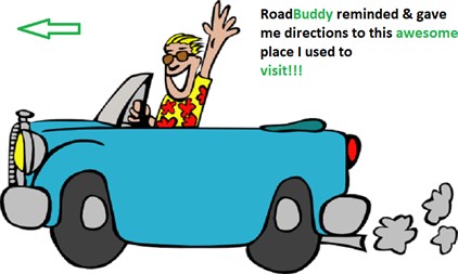 Are'nt we all guilty of forgetting the directions to our once favorite places ?? How about forgetting even their names?? Forget remembering! Roadbuddy is here!! Roadbuddy is a simple app that can remember a user's favorite location and proactively remind the user of his/her favorite location when the user is in the vicinity and provide the user, directions to the location ..all in one tap! No more of trying to remember your: favorite restaurant at a vacation spot you visited a while back! the food truck downtown! the new barber shop you just can't remember the name of! even the scenic spot on your hike, so you can get back to it later!