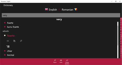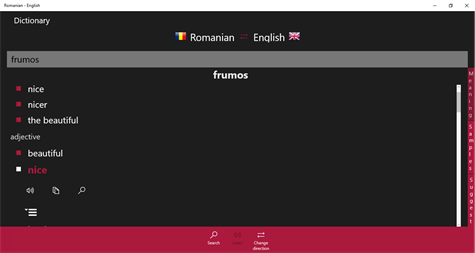 This application is an offline Romanian ↔ English dictionary and translator. This is a very fast dictionary app.