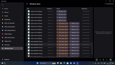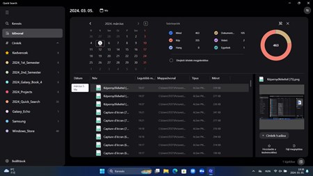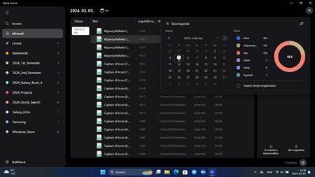 A Gyorskereséssel fájlokon belül is kereshet, nem csupán a fájlnevek között. Dokumentumokban, táblázatokban és képekben is megtalálhatja a keresett szöveget, még akkor is, ha elírás van benne. Az alapján is kereshet, hogy mikor volt a fájl megnyitva, és címkéket adhat a fájlokhoz, hogy könnyebben megtalálja őket.