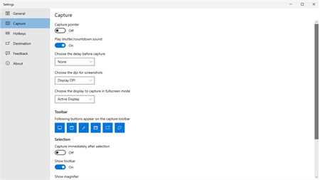 You can choose to save captures to file, copy to clipboard or immediately view and share with other programs using the drag & drop feature.