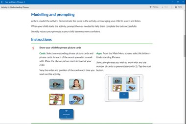 See and Learn Phrases 3 is designed for children who: •understand at least 100 words, including some nouns and some verbs •can say or sign at least 30 of the words that they understand •can follow two-keyword instructions – for example, "feed dog", "give baby a drink" in a play situation