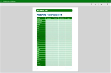 See and Learn Vocabulary 2 includes 52 pictures, together with a detailed guide and record sheets. The pictures provide visual support for teaching spoken language. New words are introduced steadily and taught through a sequence of simple matching, selecting and naming activities.