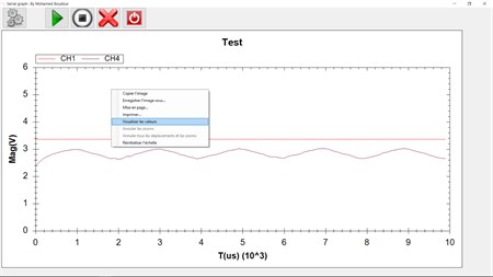 Serial Plotter is a programm that can receive data from any electronic board and reprent the result on very nice graph. The program can manager up to four channels and has Free run and append feature. the programm use a simple protocol to ease the task for fast developpement of a code on the hardware side. The protocol is as follow : string command = NumberOfSamples.ToString() + "," + SamplingTimeuS.ToString() + "," + activatedChannels + "," + FreeRunCmd;