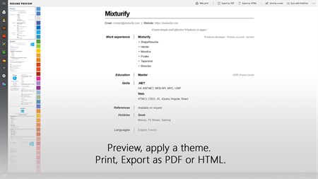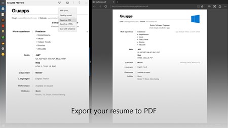 Once your CV looks good, you can export it in PDF or HTML.