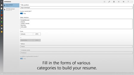 Additional features that require an upgrade to the PRO version: - Manage multiple resume. - Create custom sections. - Change the names of the default sections. - Change the order in which the sections are displayed. - Share function.