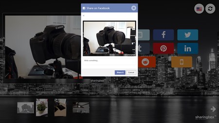 sharing Station by sharingbox is part of the sharingbox solution and is a free but private app to help sharing media contents through the main social networks (Facebook, Twitter, Tumblr, Pinterest, linkedIn, Reddit). You can also share your media by eMail or by SMS. The media you can share with this app are only the ones produced by the event Manager by sharingbox.