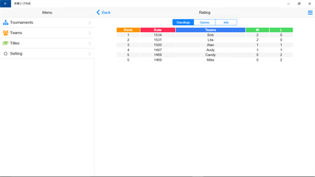 Rating tournament - Order by rate - If you won, rate will rise. If you lost, rate will drop. - Support handicaps value - Max 20 teams