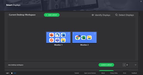 Smart display is a new PC app that allows users to easily manage the layout of various Windows applications residing in various displays. In consists of three parts: 1. Application/display retention 2. Automatic creation of extended displays 3. Layout configuration