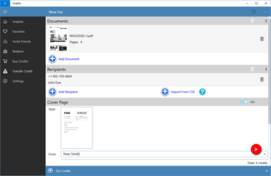 Features: - Select or drag and drop PDF document to fax - Screen capture to fax - Import recipients from a CSV file - Create/Save frequently used recipients as Favorites - Select Cover Page at your choice - Transfer Fax credits to other devices/users - Push notification when fax job has been completed