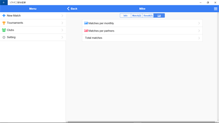 Features - Support input easily - 5,7,9 Game Match - Record team event - Record surface - Select singles and doubles - Record only game counts or points per game - Analysis graphs - Share matches, photos and graphs on Twitter, Email - Offline support