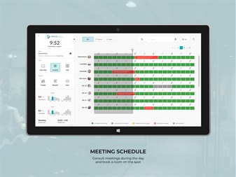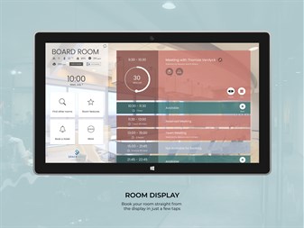 Meeting Room display 1. Ideal for short-notice booking of rooms 2. Intuitive interface for interacting with the workplace environment 3. Book your room straight from the display in just a few taps 4. Eliminate ghost meetings 5. Find nearby available rooms