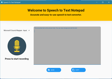 Speech to text converter tool is used to convert any voice into plain text. The default language supported is English. This tool is clean, straightforward and very powerful. Instead of typing your email, story, class, or conversation, you can just speak, and this app will convert it into text that you can copy or save as a file.