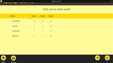 Spelling Tutor Pro will assist the parent with this task. Your child will use Spelling Tutor Pro to “Practice” the list of words and vocabulary lists.