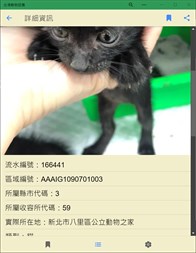 * Taiwan Animal Adoption (TAA) app 隨機呈現台灣待認養動物,如貓、狗,的資訊,包括動物圖片、流水編號、收容所名稱、收容所電話。