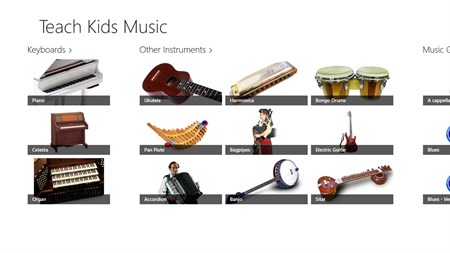 All of the popular instruments that make up a modern orchestra have been included, complete with detailed photo and high-quality sound.