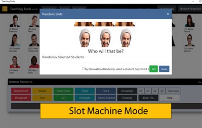 1) Slots | Randomizer | Wheel of Fortune These are some fun ways to create excitement but more importantly to randomly pick a student impartially. Tell that "unlucky" student to "blame" it on the coding as it is not your fault.
