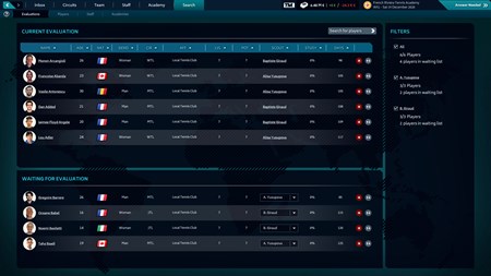 Build your team Each player has their set of strengths and weaknesses that you’ll have to factor in to recruit & get the best out of them. Dozens of parameters govern how each player behaves, both in and out of the field. Playstyle, favorite surface, morphology, temper, physical condition: all these aspects make each player unique. As a manager, you are given a set of analytical tools that help you better grasp your players and follow their evolution over time.