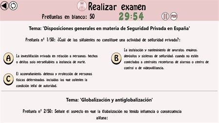 - Más de 750 Test. - 15.000 Preguntas. - 15 exámenes oficiales. - Preguntas de Psicotécnicos, ortografía e inglés. - Simulación de examen. - Preguntas continuamente actualizadas. - Posibilidad de impugnar una pregunta. - Actualizaciones periódicas de las preguntas. - Dos modos de realizar un mismo test (modo de respuesta instantánea o modo examen). - Estadísticas de los test realizados.