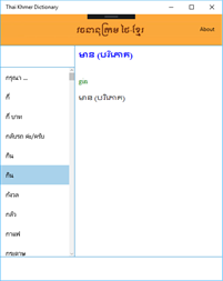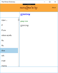 Thai Khmer Dictionary app help you to translate most of common Thai words into Khmer language.