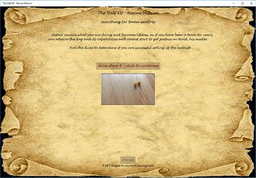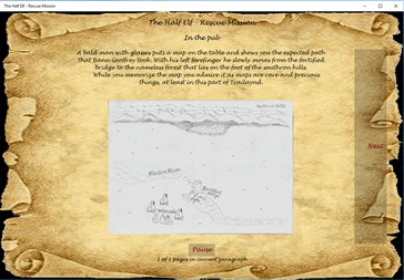 This app is an interactive fantasy book in which you are leading the main character i.e. a half elf who is called "The Owl" through the story. You will make choices that decide how the story continues. You will roll dices to determine if you succeed or fail when doing risky actions, like a fight. Riddles need to be solved to bring the story to an happy or to a sad ending.
