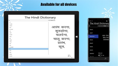 This is best FREE offline dictionary app that delivers you the Hindi meanings of the English word. The perfect English to Hindi Dictionary for you Windows Phone with bunch of Hindi meanings of your required English Words.