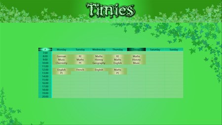 It's a simple school schedule in which you can add your lessons, change the time (adding your shool’s specific system), or even you are able to highlight something important lesson. The app is monitoring your system clock and highlight the actual lesson too. Furthermore you can change the background to one of your picture to fit better to your style. On the live tile you can follow your actual lessons, while the app is not closed.