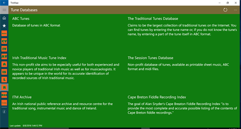 Designed for traditional Irish and Celtic music lovers and session musicians, TradApp provides quick connections to a wide variety of Celtic music content available on the Internet including videos, radio stations, albums and the latest Celtic music news. The app also presents Celtic session musicians with timely, relevant information about their music genre, tutorials, tools for practice, sessions, quick access to tune databases and more.