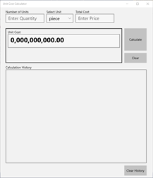 Find out which products give you the best value. Is that bundle deal actually cheaper? Is the larger package actually more economical? Use the Unit Cost Calculator to find out! Simply enter the quantity of the product, select the unit and key in the price. Hit the calculate button and you'll get the cost per unit of that product.