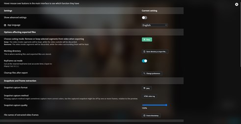 How to take full-resolution snapshots and export video frames or segments. Customization options for exports, including timestamps and quality settings.