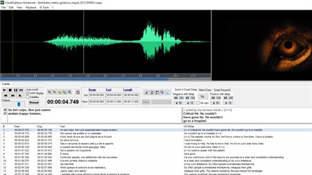VisualSubSync Enhanced is a subtitle program using audio waveform representation as its cornerstone. SRT and SSA/ASS subtitle formats are supported. It also provides some tools to help improving the quality of your subtitle.