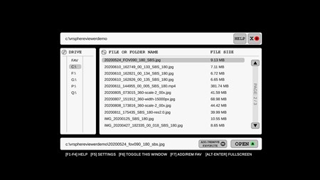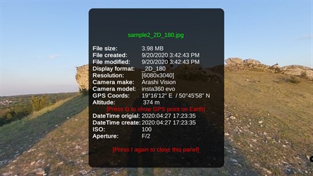 Some months ago, after unsuccessful search for any quick pic/video browser for 180/360VR content to share pictures and videos taken with popular VR camera for desktop environment without need for VR and it become clear for author, that such tools is needed. The goal was to be able to share videos and pictures taken with popular VR camera with family members who don't own any VR headset, or to view this content on a flat screen or 3D projector, without VR headset on. Result is here, and it grows thanks to you! Enjoy the new release!