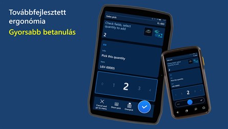 A Microsoft Dynamics 365 Supply Chain Management szolgáltatás Warehouse Management mobilalkalmazása lehetővé teszi, hogy a raktári dolgozók mobileszközök használatával végezzenek el raktári feladatokat. Közvetlenül csatlakozik a Dynamics 365 Supply Chain Management környezetéhez, és lehetővé teszi a dolgozók számára, hogy anyagkezelési, bevételezési, kitárolási, betárolási, ciklikus leltározási és termelési feladatokat végezzenek el a raktárterületen. A Warehouse Management mobilalkalmazás a következő előnyöket és hatékonyság-növelő funkciókat kínálja: A dolgozók megnövekedett hatékonysága: ○ Testreszabott felület segíti a gyors raktári szkennelést ○ Több mint 50 különböző raktári folyamat, amelyeket a Dynamics 365 Supply Chain Management támogat ○ Nagyméretű beviteli vezérlők a mennyiségek gyors megadásához ○ Beépített numerikus billentyűzet számológéppel, amely automatikusan megnyílik a 20 fölötti mennyiségekhez. ○ A nagy betűkkel megjelenített legfontosabb információk könnyen megtalálhatók ○ Központosítottan kezelhető, eltárolt dolgozói és eszközspecifikus beállítások Továbbfejlesztett ergonómia: ○ Nagy objektumokból álló érintőfelület és más olyan funkciók, amelyek megkönnyítik az alkalmazás használatát kesztyűben. ○ Az erősen kontrasztos megjelenésnek köszönhetően szennyezett képernyőn is jól olvashatók a szövegek ○ Egyéni gombelhelyezések lehetősége, hogy a kezelőfelület megfeleljen az egyes dolgozók fogásának és eszközének, függetlenül attól, hogy jobb- vagy balkezesek-e Gyorsabban elsajátítható az új dolgozók számára: ○ Minden lépéshez egyértelmű címek és illusztrációk tartoznak ○ Teljes képernyős fényképek a termékkiválasztások ellenőrzéséhez Kipróbálná? Letöltheti le az alkalmazást, és demó módban futtathatja, így egy Dynamics 365 Supply Chain Management-környezethez való csatlakozás nélkül is megismerhet sok funkciót.