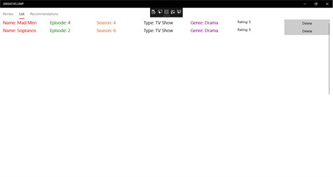 An application which allows you to log the shows/movies you have watched and also gives you great movie suggestions using themoviedb! :D