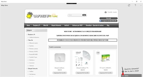 Caratteristiche del prodotto - I clienti possono acquistare prodotti legati al mondo dell' IoT e Networking da una singola applicazione. - Trattiamo prodotti marchiati Ubiquiti, Mikrotik, Cisco, e Raspberry. - I Clienti possono cercare rapidamente i prodotti ed ottenere informazioni dettagliate sulle loro caratteristiche tecniche. - Verificare la disponibilità di un prodotto non è mai stato così facile.