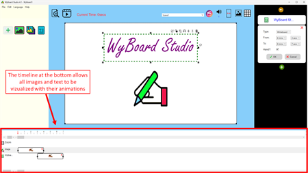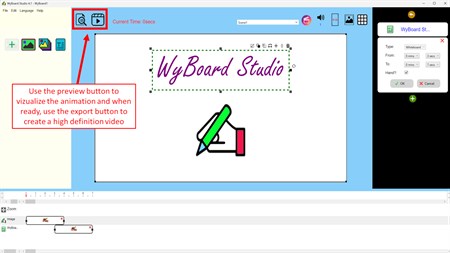 WyBoard Studio is a drag-and-drop animation video maker that allows users to create doodle style videos, where image and text can be animated using hand-drawing (scribble, doodle) and many other available animations in a powerful but simple and intuitive way.