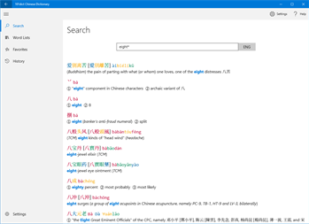 The 101dict Chinese Dictionary is a dictionary with more than 200,000 entries. It supports English, German, French, and Hungarian translations based on the free dictionaries CC-CEDICT, HanDeDict, CFDICT, CHDICT, and CC-Canto. In addition, HSK and TOCFL vocabulary lists can be browsed. For Chinese characters, stroke order animations and Unihan information are available.