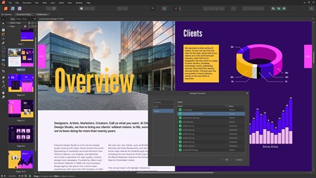 BUILT FOR YOUR WORKFLOW • Windows hardware (GPU) acceleration (for users running Windows 10 (April 2020 update or later) with a Direct3D feature level 12.0 capable card) • IDML & XLSX import • Section manager to organize your documents • Pan, zoom and scroll through documents at 60fps • Regular Expressions search and replace • Savable undo history with alternate futures • Customizable keyboard shortcuts and savable presets, including studio layout presets for the UI layout • Smart master pages • Automatically generate indexes and table of contents • Manage and create anchors • Consolidate images linked from various locations into a single folder • Merge multiple documents together into a single file • Save documents as template files to re-use time and time again • Collate your document alongside all used image and font resources into a folder using the Package feature • Convert pixel layer to image node • Integrate text and image links into documents by merging from external data sources • Flag PDFs for PDF passthrough to ensure perfect representation of original PDF when exporting, without the need to have embedded fonts installed