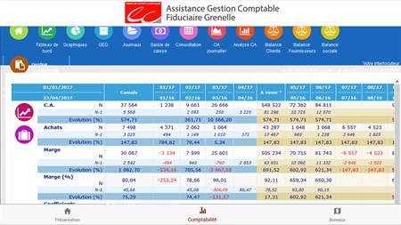 Notre application vous permettra d'accéder à votre comptabilité en ligne, à l'actualité juridique fiscale et sociale et de nous géolocaliser