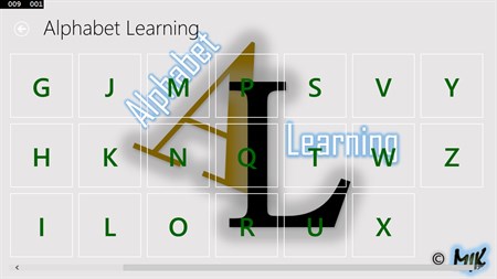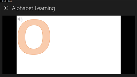When you click on an alphabet tile you will get the alphabet with a familiar word and picture. You also get the standard pronunciation from the default windows voice synthesizer.