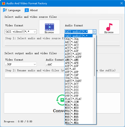 Convert to the following audio formats: MP3,WAV,WMA,AAC,AC3,AIF,AIFF,AIFC,AU,CAF,FLAC,M4A,M4B,MOV,OGG,OPUS