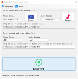 The main function: Convert video to video (such as MP4 to MOV, FLV to MKV, etc.). Convert video to audio (such as MP4 to MP3, FLV to AAC, etc.). Convert audio to audio (such as MP3 to WAV, FLAC to M4A, etc.). Convert audio to video (such as MP3 to MP4, M4A to 3GP, etc.).