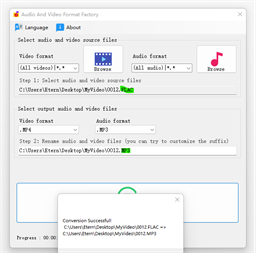 Simple and easy to use: Step 1: Select video and audio source files Step 2: Rename video and audio files (you can try custom suffixes, too many formats to list in detail)