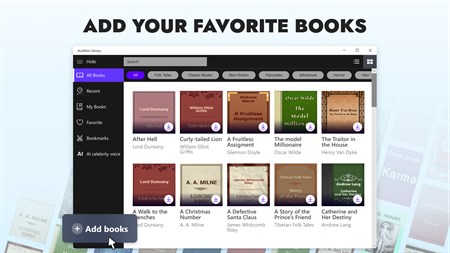 ADD YOUR FAVORITE BOOKS Do you like bestsellers, classical novels, true crime or non-fiction? Add any book you like and listen to it right from your device.