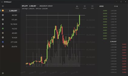 Cryptcurrency charting app. Displays BTC/JPY, XRP/JPY, ETH/JPY, LTC/JPY, MONA/JPY, BCC/JPY, XLM/JPY, QTUM/JPY, BAT/JPY, OMG/JPY, XYM/JPY, LINK/JPY, MKR/JPY, BOBA/JPY, ENJ/JPY, MATIC/JPY, DOT/JPY, DOGE/JPY, ASTR/JPY, ADA/JPY, AVAX/JPY, AXS/JPY, FLR/JPY, SAND/JPY.