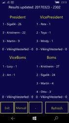 JOIN a game with random players by pressing JOIN on the Main screen, or CREATE your own private game and invite others to FIND it. The goal is to get rid of all your digital cards first to become President. The last one with cards (the looser) becomes Boms and gets to shuffle/deal the next round. Receiver of 3 of Diamond will do the first shuffle and deal. There are hourly updated League Tables so you can see how you are doing compared to other players. The displays are designed specifically to make it easy to learn and play Boms.