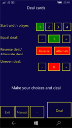 Rules in summary: Boms is played by 2, 3 or 4 players. One of the players shuffles and deals the cards to the other players; 16 each if 2 players, 17 if 3 and 13 if 4. Shuffling and dealing is automatic, but you decide on a combination of methods and orders to mix things up and make it a game of skill.