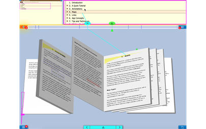 8) BookMapper lets you annotate beyond the traditional page-level annotations: You can use “maps”, which are documents at a higher-conceptual level, to express whatever additional information you want about your page-level annotations. Using this approach, you can create higher-level annotations that span across multiple PDF files, which is something you will appreciate when you need to capture notes involving multiple research papers, for instance.