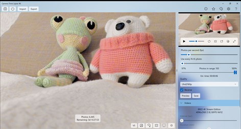 Create time lapse videos with any camera or video capture device in 4K, FHD, HD or other resolutions.